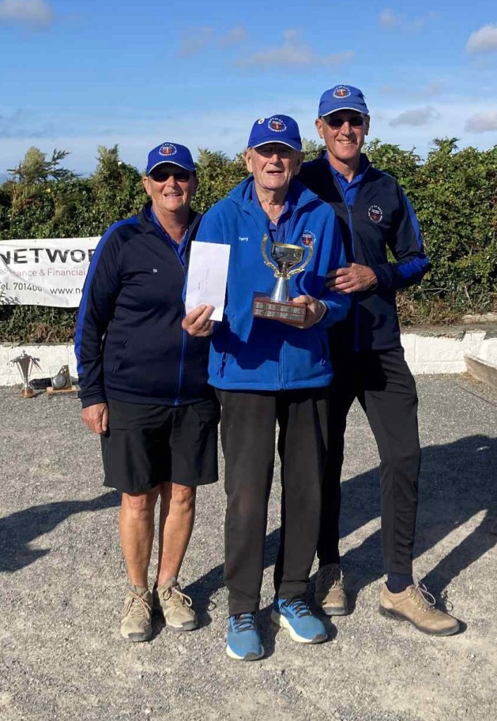 The Guernsey Open Triples has ben won by Pétanque Events 2, comprising Migs Trimingham, Clare Revill and Clive de Silva. They won all of their group games before overcoming Gary Cowburn, Wendy Ritzema and Dave Allen in a long semi final.