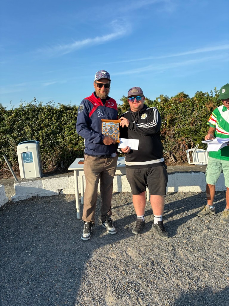 In the Triples , Craig and Dan teamed up with Giles Cleal. Whilst their standards never reached the heights of the Doubles, they once again found themselves in the final after a similar format and some battling performances against UK, Jersey and Guernsey opposition. This time, they faced another high quality Jersey team in Geoffroy Buffetrille, Andrew Bellamy-Burt and Callum Stewart. Geoffroy in particular played with an extremely high standard, shooting almost every boule. The Jersey team ran out convincing winners 13-3, with a superb shot to shoot the cochonnet on the final end to seal the victory.